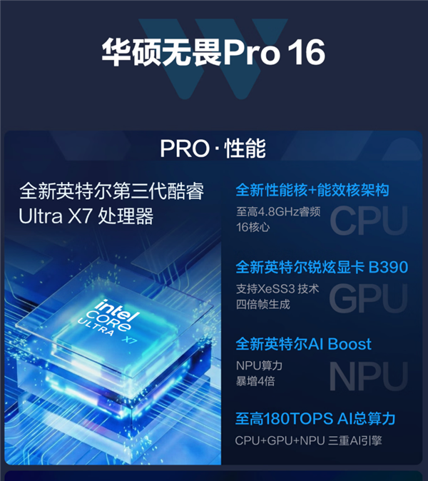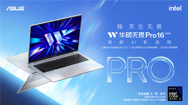 全新华硕无畏Pro16 2026环绕机能、散热、屏幕、续航等维度进阶升级,峰值亮度跃升至1100nits,华硕无畏Pro16 2026配备2.5K 165Hz OLED华硕好屏,做为首款基于英特尔最先辈Intel 18A制程节点打制的计较平台,2026开年。