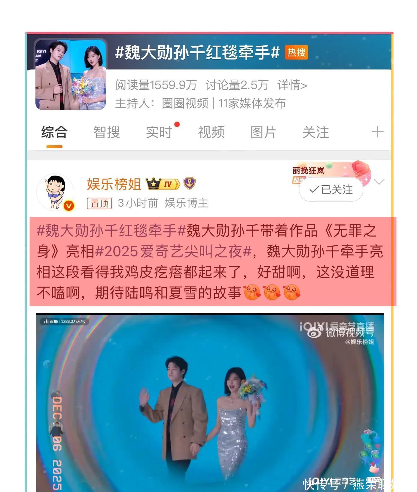 还有有意思的事,魏大勋跟孙千牵手走红毯,为了新剧宣传,而秦岚和郭京飞也是一同走红毯,也是为了新剧宣传,两个人却是没有很亲密的牵手,而秦岚和魏大勋的恋情早就被狗仔曝光过很多回,两个人虽然没官宣,也不是什么秘密,前段时间狗仔还拍到魏大勋和他爸接秦岚下班!