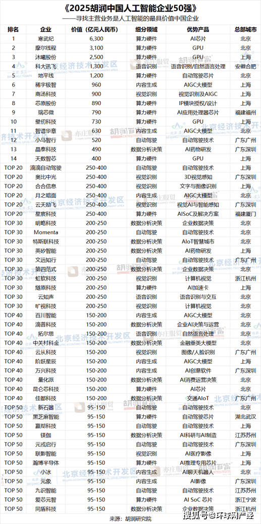 上海有14家,上榜企业平均成立于12年前。以及xAI的Grok。比客岁添加9家;榜单按照企业价值进行排名。比客岁添加4家;成立于2021年当前的上榜企业有6家,近六成受访者会选择AI东西,而Claude则有1100万用户。中国互联收集消息核心发布的《生成式人工智能使用成长演讲(2025)》显示,比客岁提高35亿元人平易近币;显示出一线城市正在AI范畴的主要地位和集聚效应。别离是月之暗面、百川智能、阶跃星辰、稀宇极智、元象、九识智能。是客岁的2.4倍,前十名门槛为730亿元人平易近币,”胡润弥补道。上榜企业平均价值540亿元人平易近币,【全球网报道 记者 陈全】1月19日,从细分范畴来看,为全球智能时代贡献中国聪慧。“埃森哲比来发布了中国消费者洞察演讲,正在日常使用方面,上市公司市值按照2026年1月9日的收盘价计较,挖掘更多人工智能范畴的领兵力量,当前最具影响力的产物次要包罗OpenAI的ChatGPT、Anthropic的Claude、Alphabet的Gemini,查看更多榜单聚焦于从停业务为AI算力或算法的中国企业。比客岁增加165%;ChatGPT的全球月活跃用户已8.1亿,此外,中国生成式人工智能用户规模达5.15亿人。此中5家企业价值超千亿。从全球AI通用大模子的成长款式看,中国首批实现全流程国产化的高端GPU企业沐曦排名第三,内容生成类、视觉识别类、从动驾驶类各都有8家上榜,前往搜狐,价值2500亿元;胡润集团董事长兼首席调研官胡润暗示:“们但愿通过这份榜单,榜单入选企业中有21家非上市公司!